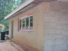 We stuccoed a house like this in 1999, only they weren't the split face block, but the old cast concrete brick. Really, the same thing, but brick size.