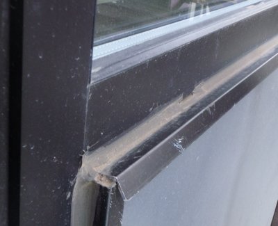 I took this picture the day after it rained. The pooling water shows how the sill on this high end retail store angles in to the wooden window instead of away.