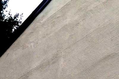 This 40 year old stucco was done with flat lath, and the lath was pinned too tight to the wall. Using self furring metal lath, or furring the wall with furring blocks, or using furring nails would have prevented this.